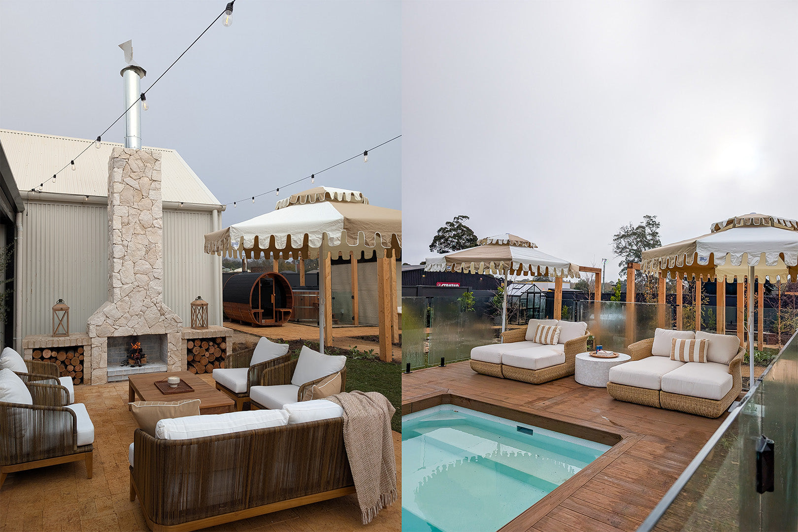 Whether it's a cozy backyard, a bustling café terrace, or a poolside lounge, our umbrellas not only provide shelter but also bring a touch of timeless elegance, transforming any space into a luxurious retreat. Try our product visualiser (mobile only) to see how a Retro Umbrella can transform your space.