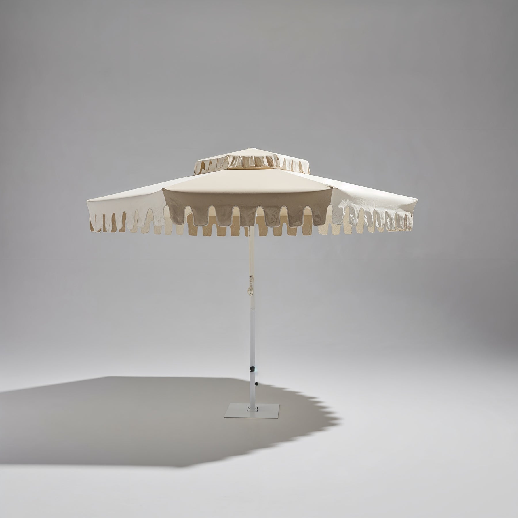 With its signature double-tiered canopy and scalloped valances, Desert Sand brings retro elegance and airflow-friendly functionality in one. The iconic layered silhouette not only softens harsh sun but adds sculptural charm to every outdoor setting — from poolside patios to café courtyards.